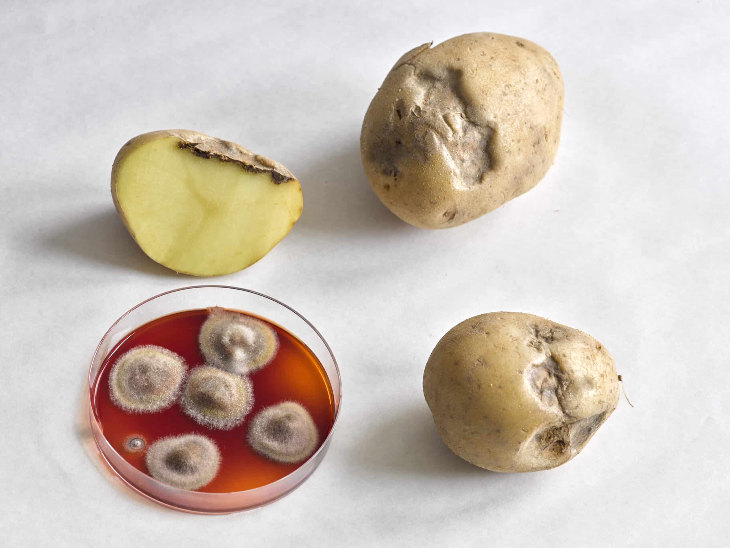 - Neem een representatief monster van de afwijkende aardappelknollen, -planten, -stengels of -bladeren. Denk aan enkele knollen, een hele aardappelplant of bladeren met symptomen.