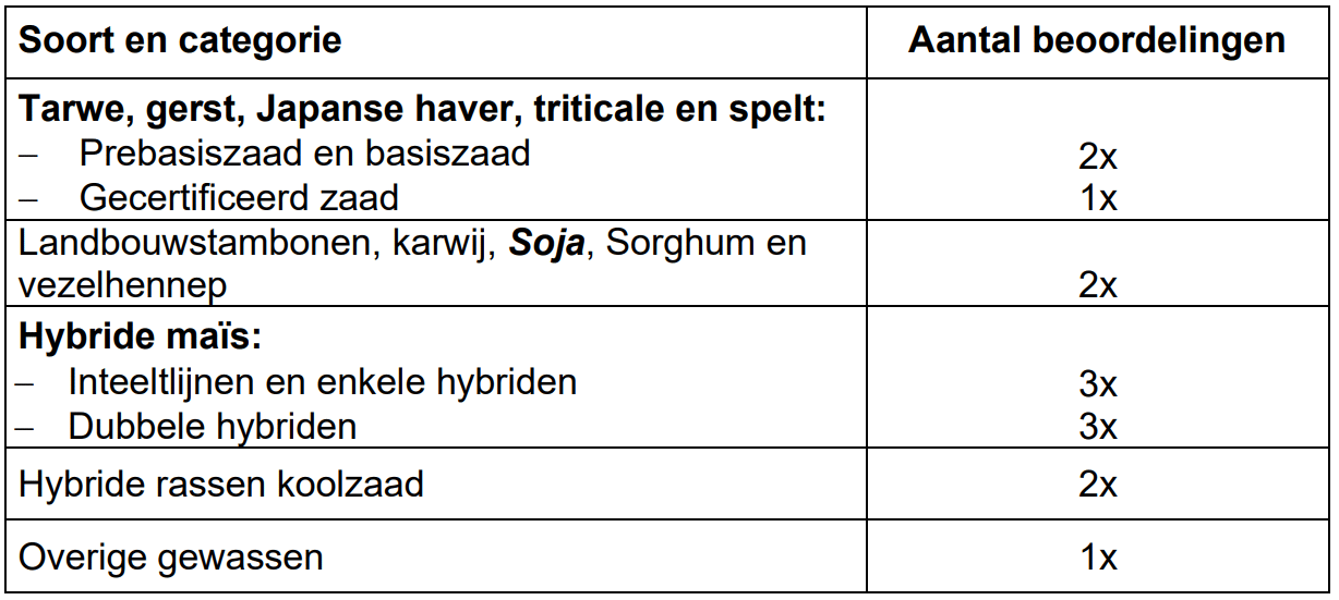 | Prebasis- en basiszaad | 1 per 1.000 |
