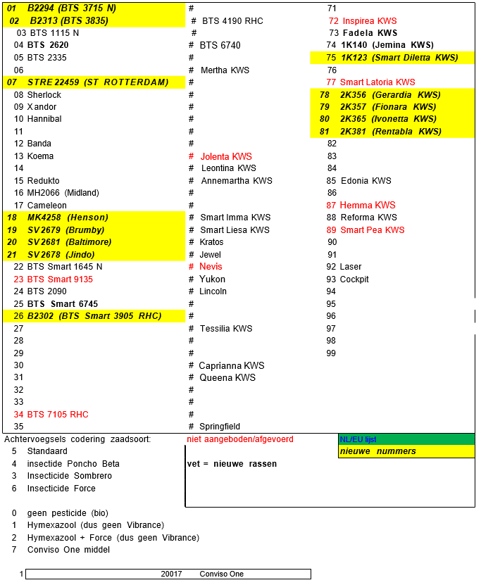 CODENUMMERS SUIKERBIETENZAAD 1-dec-23